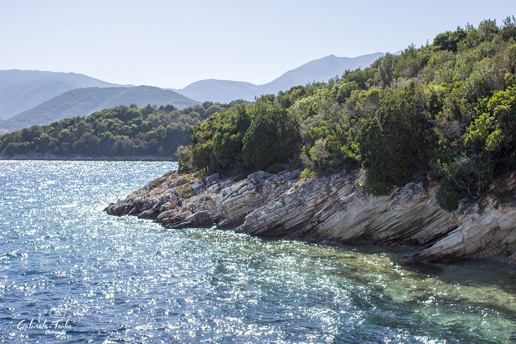 Лефкада – дълбоки тюркоазени води и високи планини. Така бих описала острова. Водите са дълбоки, дълбоки, дълбоки и тюркоазени. Всъщност са и студени. Не знам дали винаги са така студени или сме попаднали на някакво моментно течение.