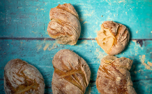 Поръсете царевично брашно в тава и отгоре подредете багетите.