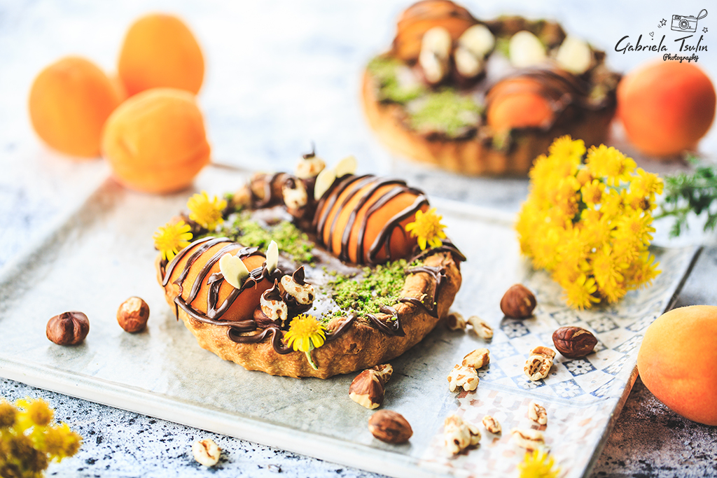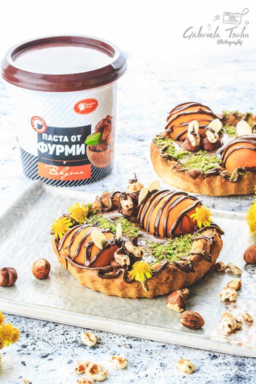 Декорирах със свежи кайсии, течен шоколад и подръчни продукти.