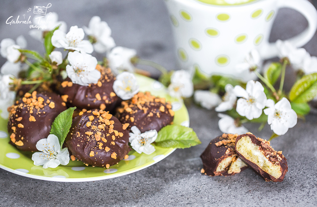 През това време си пригответе крема (той е подходящ за напълването на половината еклери – прочетете уводната част, ако не сте) като смесите маскарпонето с био кафява захар до хомогенизиране. Напълнете сместа в пош и сложете подходящ накрайник за пълнене. Напълнете еклерите. Пълнят се съвсем нормално както се пълнят нормалните еклери. След като ги напълните ги оставете на една страна и се заемете с приготвянето на глазурата.