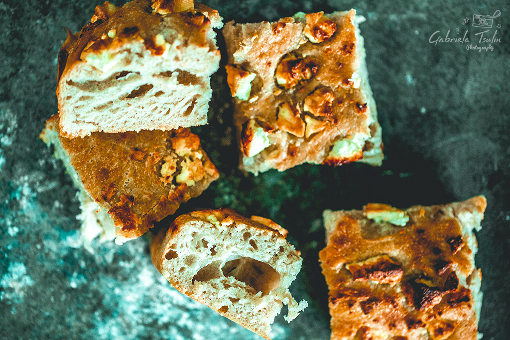 След това разтегнете и отново оставете за половин час. Пoвторете тази процедура три пъти. Прехвърлете тестото в стъклена купа и оставете да втаса докато увеличи обема си два пъти.