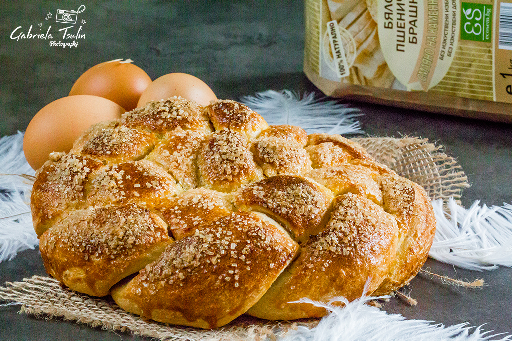 Намажете с разбит жълтък с масло и поръсете с кафява захар.