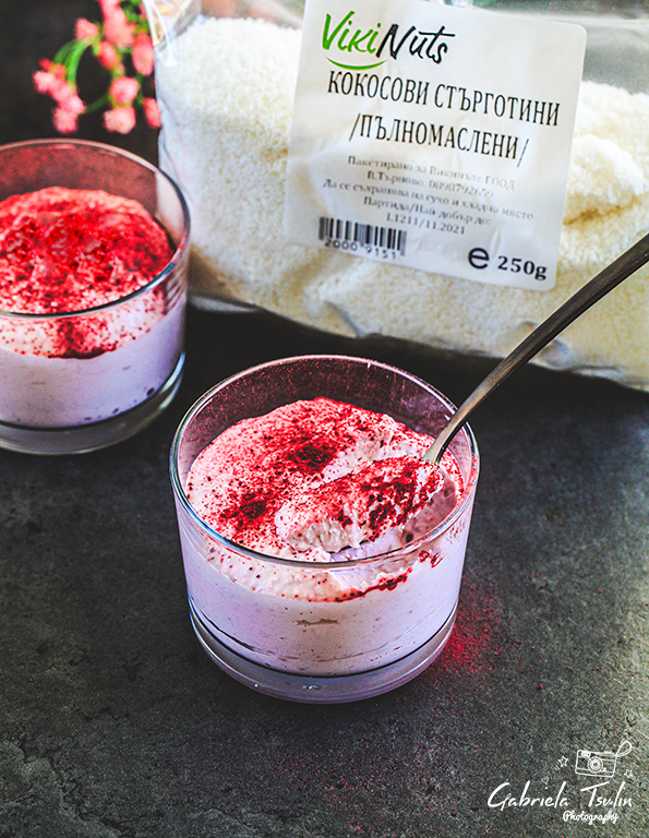 В края на тази статия ще откриете изчислени нутриенти. От посочените количества продукти, излизат три десертни чашки, но спокойно могат да се разделят и на четири и така общият брой на калории и нутриенти да падне още.