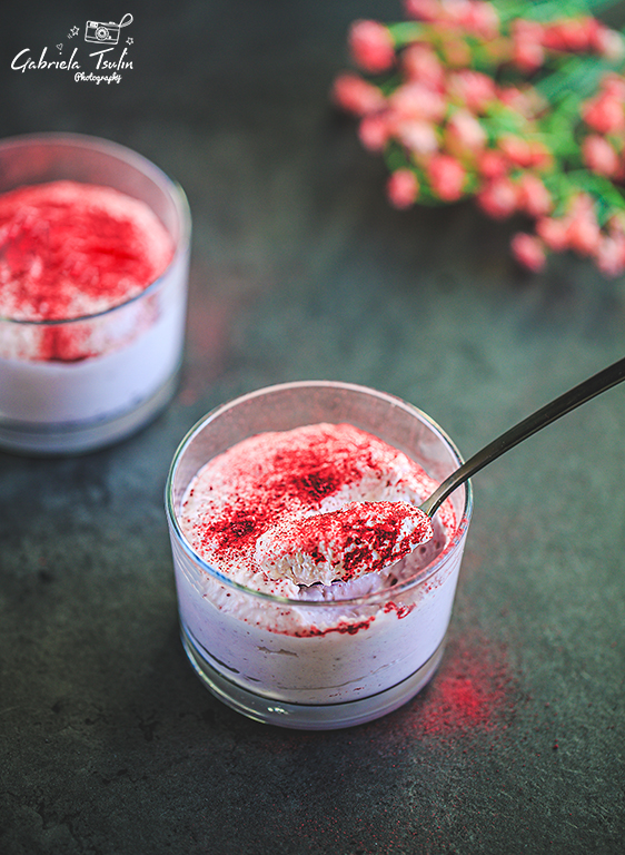 В днешната ми статия ви споделям рецепта за здравословен малиново веган крем, който вярвам, че много ще ви хареса. Дъщеря ми изяде едно огромно количество още преди да го разсипя в десертните чаши. Приготвя се изключително лесно и бързо.