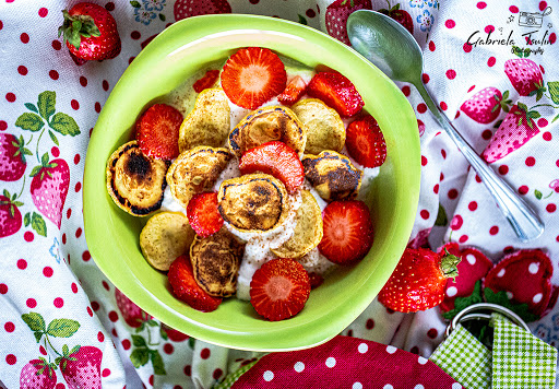 Днешната ми рецепта за тези мини палачинки е нисковъглехидратна, направо кето версия. Поднесох ги с ядково подквасено мляко и пресни ягодки.