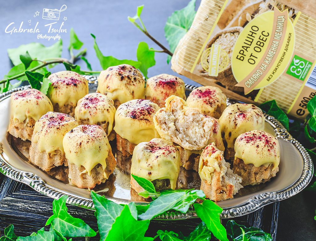 Въпреки че съм използвала овесено брашно – то е в минимални количества, а и можете да го замените с кокосово, ленено, бадемово или от елда. Всички брашна са без глутен.