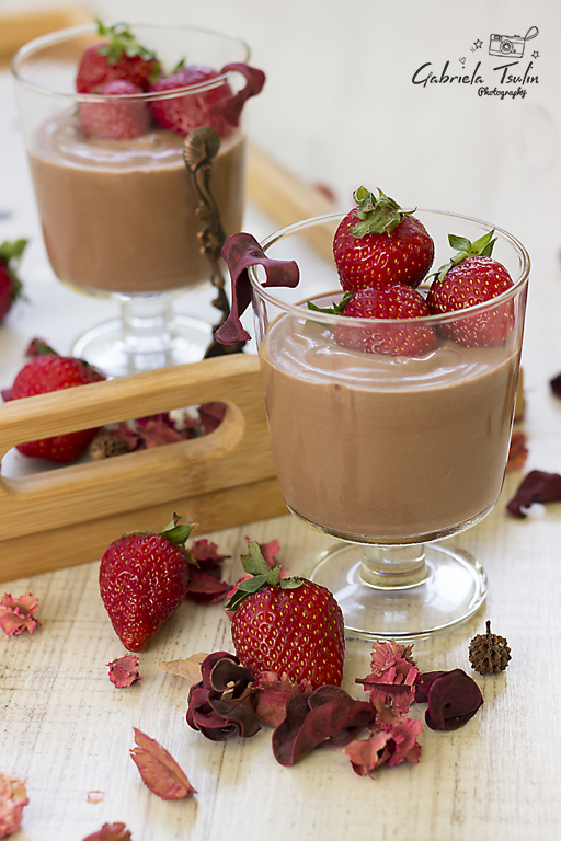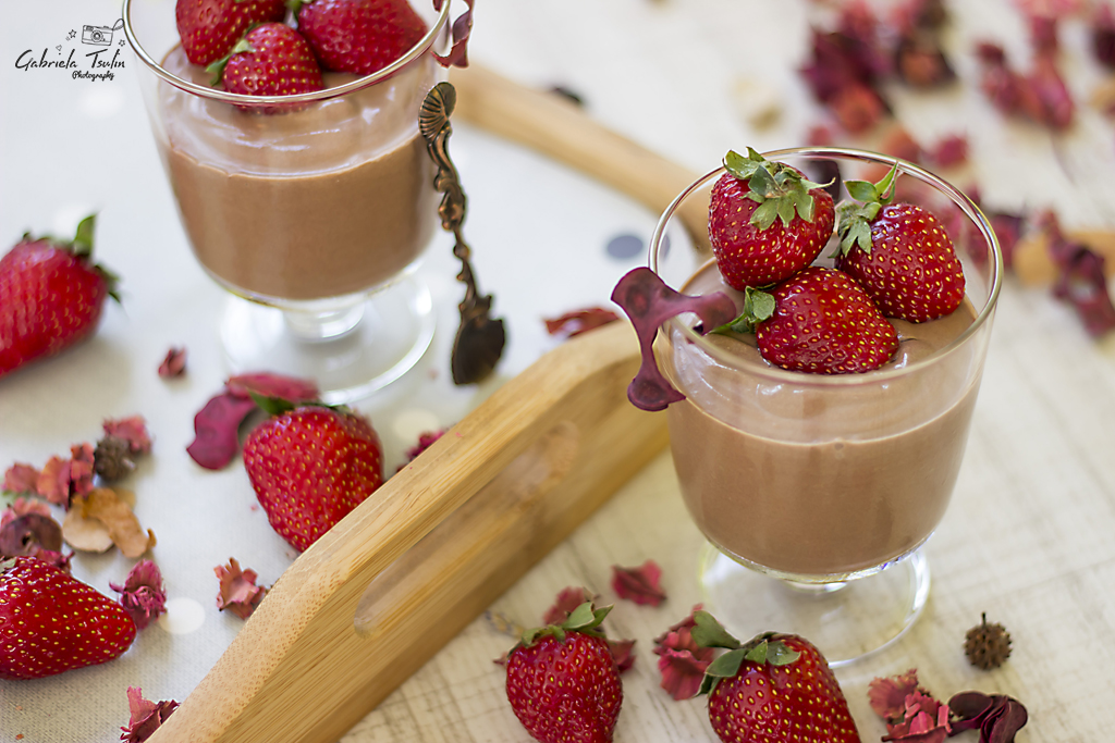 Лешниковият цвят и ефирността му не отстъпват по нищо на истинският шоколадов мус. Разликата тук е, че няма яйца, няма и шоколад. Тези съставки са заменени от други три, а и в същото време се приготвя по – бързо от истинският мус.