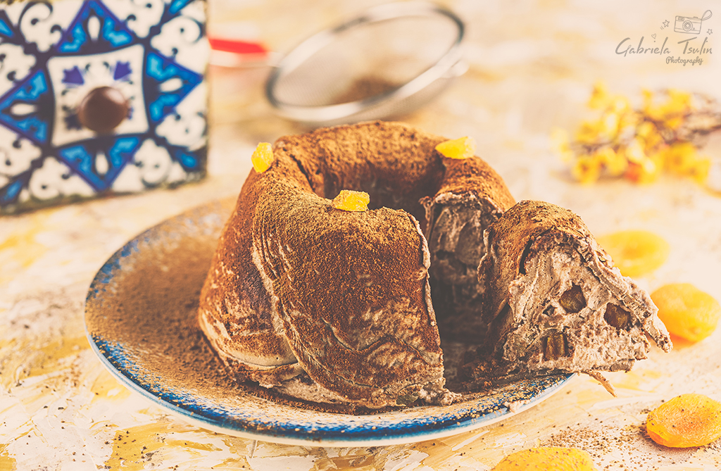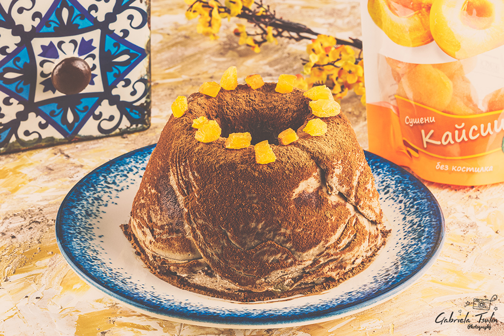 Извадете я внимателно от формата и поръсете с брашно от рожков или натурално какао. Декорирайте пожелание със сушени кайсии, нарязани на малки парченца.