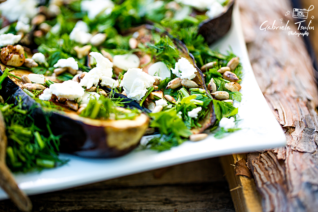Извадете патладжаните от фурната и ги разпределете в чинии.