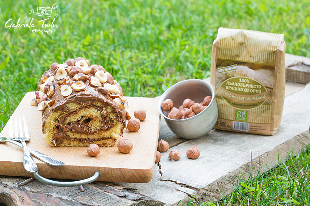 Шоколадовото руло с лешници, както ще прочетете по – надолу в рецетата е без глутен. Използвах брашно от ориз.