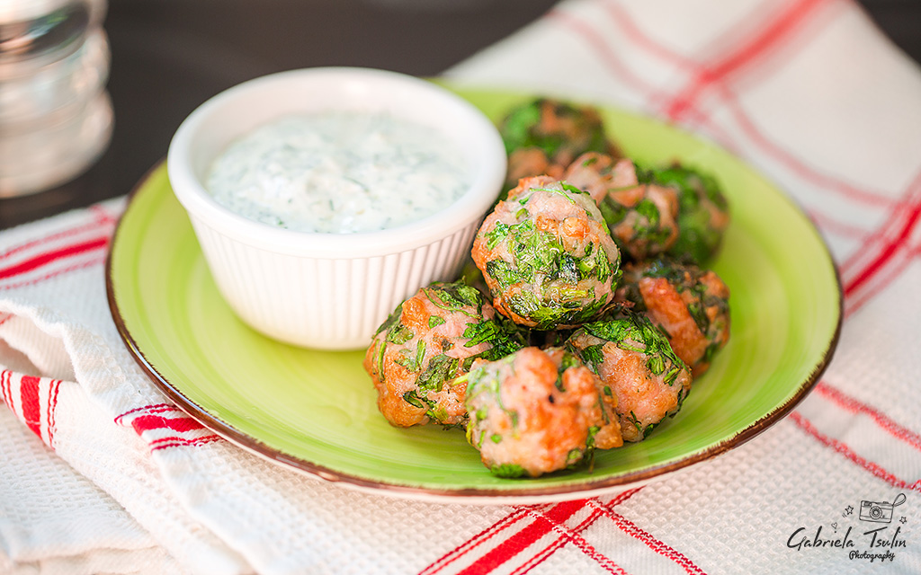 Аз използвах уред за пържене с въздух и кюфтенцата изпекох на 200 градуса за 6 минути.