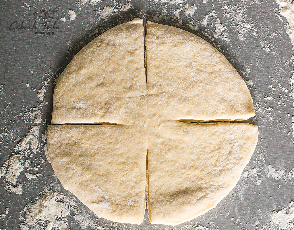Преместете образувалото се тестено цвете в тава, покрита с хартия за печене.