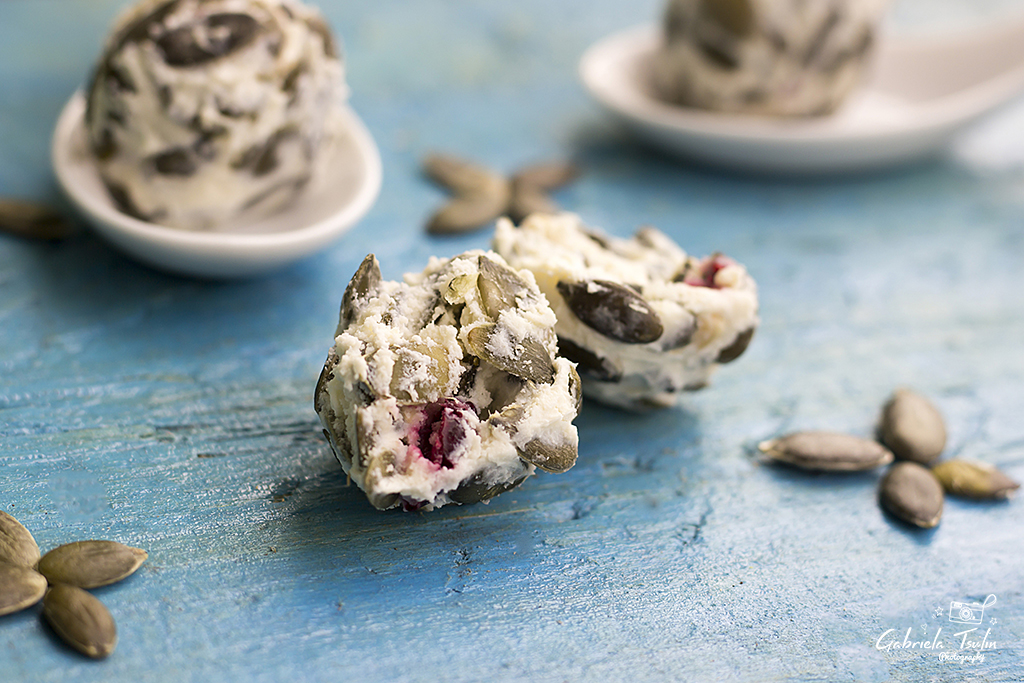 Съдържат повече мазнини, защото включват два вида ядки, както и крема сирене. Боровинките са за да създадат онази сладка нотка, която всички търсим при консумацията та трюфели и бонбони.